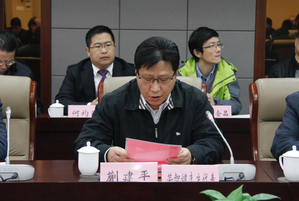 荣智健先生的代表蒯建平总经理宣读荣智健先生贺函,荣智健先生向新一届董事会成立表示祝贺,对江南大学近年来教育科研方面取得的成绩以及在国内外产生的影响非常赞许,并表示将受邀继续担任江南大学董事会名誉董事长。