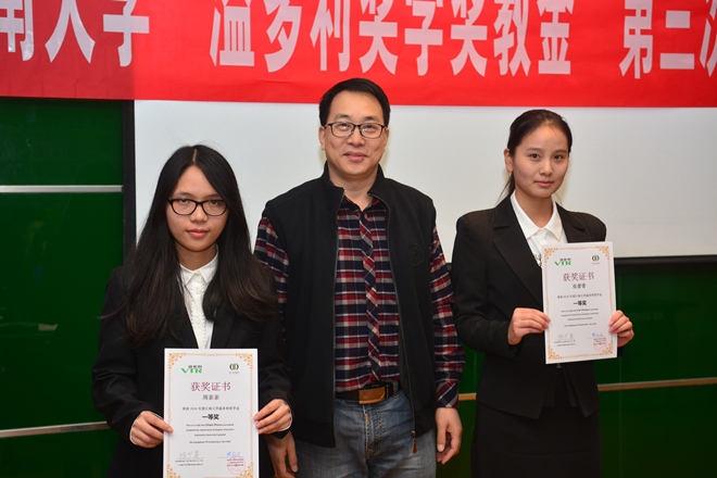 丁思亮先生宣读获奖名单。与会嘉宾为获奖师生颁发证书。获奖学生代表张蕾蕾发表了获奖感言,表达了喜悦之情以及对公司的感谢,并承诺将把这份荣誉转化为行动,激励自己努力学习,取得更好的成绩。
