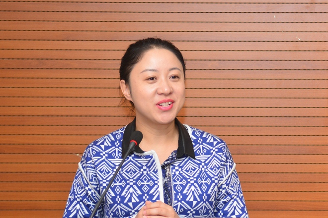 张蓓女士向来宾介绍了希悦尔公司的情况,与同学们分享自己多年来的工作经验,对江南大学学生的综合能力和优异成绩给予了肯定,并希望大家能锐意进取,提升综合能力,将专业知识与实践能力相结合,做社会责任感强、素质佳的大学生。