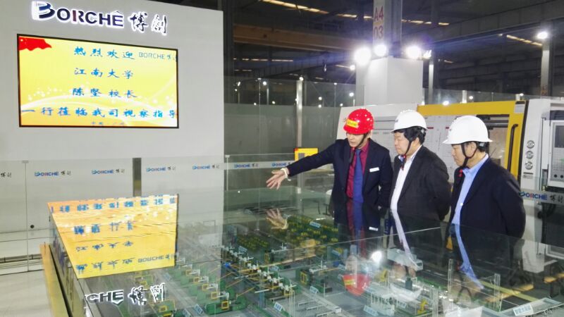 在朱康建董事长的陪同下,陈坚校长一行先后参观了博创文化长廊、智能展厅、生产车间、智能工作室等场所,对智能制造有了更深层次的认识,对博创公司获得国家首批“智能制造试点示范”企业和博创的企业文化、8S管理及科技创新等方面给予了高度的评价。朱康建董事长向陈坚校长一行表达了企业人才需求,产学研合作等方面的愿望。陈校长表示母校在人才、技术等方面将为校友企业提供优先的便利与支持,并期望与博创公司强化合作,为企业的智能制造发展创造更广的空间。