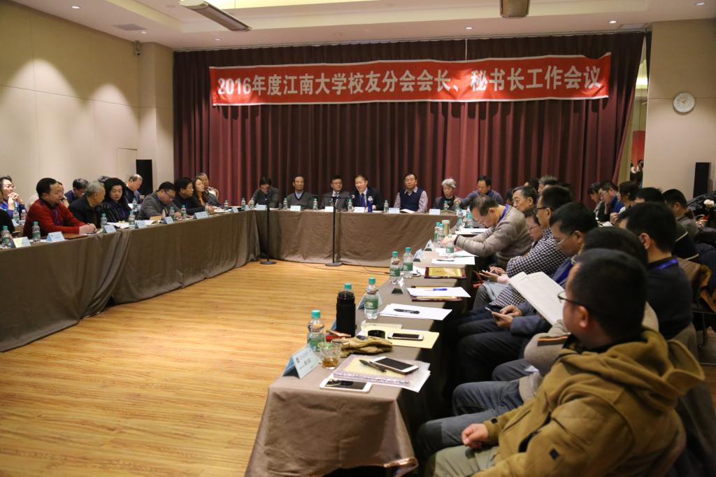 黑龙江省江南大学校友会会长江连州致欢迎辞。对母校领导以及各地校友分会会长、秘书长表示热烈欢迎。社会资源处处长林云鉴总结了2016年度江南大学校友会工作。一年来,校友会秉持“三个服务”宗旨,创新发挥互联网作用,建成开通校友信息数据库、校友信息管理平台和校友互动平台,进一步加强与海内外校友联系。建立校院联动机制,梳理社团工作机制,加强部门内涵建设,优化校友工作机制。通过举办“天下江南人”讲坛,办好《天下江南人》刊物,开展“情在江南”系列活动等方式,营造天下江南人品牌。开发校友资源,结合学校科技优势和校友资源优势,促进校地合作、成果转化。各地校友分会广泛开展校友活动,共享校友资源,促成校友之间相互合作,打造可循环校友平台,为母校的声誉和发展凝心聚力。校友事务部主任刘伯贤介绍校友信息系统建设情况,邀请浙江大学杭州校友会原秘书长刘建斌做经验交流。