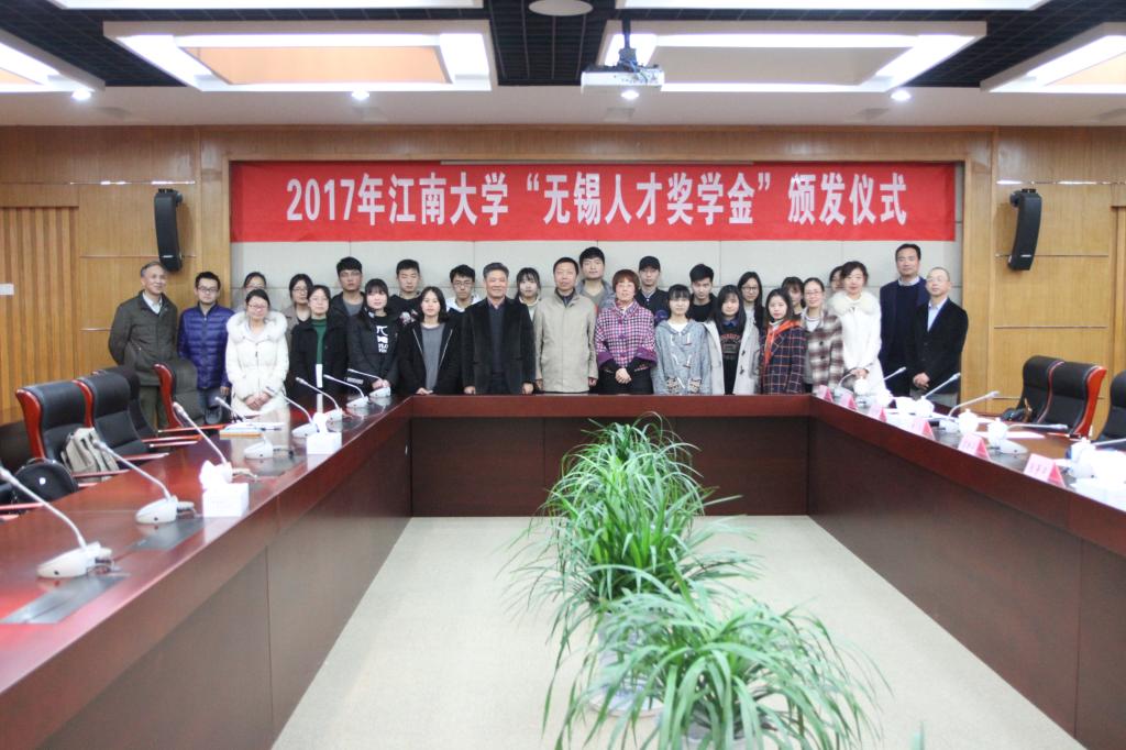3月22日下午,无锡市人才服务中心党委书记、副主任顾银平与无锡市人力资源中心的党员干部代表走进江南大学,为我校20名品学兼优、家庭经济困难的学生颁发“无锡人才奖学金”。江南大学学生工作处处长张菁燕、社会资源处副处长窦新华接待来宾并参加颁奖仪式。学生工作处副处长周雪晖主持本次颁奖仪式。