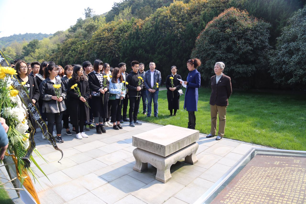 桃花风起正清明,青松滴翠表哀思。4月1日下午,我校王武教授、社会资源处、校团委、纺织服装学院师生代表和学缘志愿者协会成员,师生一行40余人,前往已故国家副主席荣毅仁及夫人杨鉴清的墓地进行了祭扫。