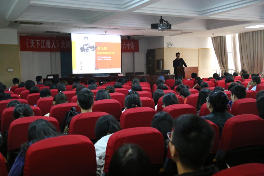 4月20日,我校校友,同济大学设计创意学院教授、博士生导师林家阳做客我校第26期《天下江南人》大讲坛,与我校师生一起分享自己的“设计情怀”。我校设计学院党委书记邱建平、设计学院院长张凌浩、社会资源处处长黄敏、学生工作部(处)部(处)长张海峰和江南大学杭州设计校友会秘书长徐浩等出席讲座。本次活动由社会资源处和至善学院联合举办。