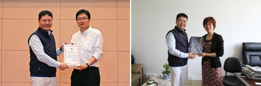 会前,校党委书记朱拓、副校长吴正国热情会见了沈毅校友,进行了亲切的会谈,学生工作处处长张菁燕赠送了校园文化书系《意造神领》。