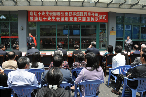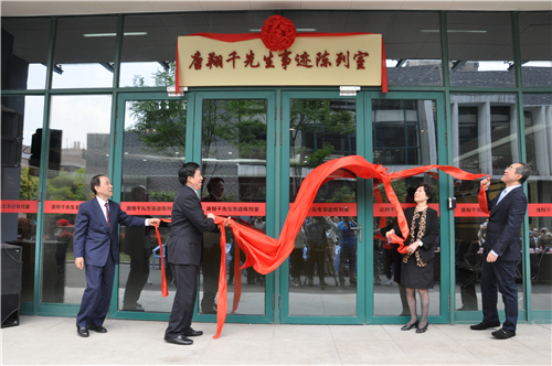 随后,唐英年、唐尤淑圻等共同为唐翔千事迹陈列室揭幕,王生洪、商波涛为“无锡市爱国主义教育基地”揭牌,唐英年向江南大学君远学院、无锡机电高等职业技术学校、上海大学翔英学院等赠送了唐翔千先生爱国创业重教画册。最后,领导及嘉宾代表共同为唐翔千先生事迹陈列室剪彩。在仪式结束后,与会领导与各单位师生代表一同参观了唐翔千事迹陈列室。