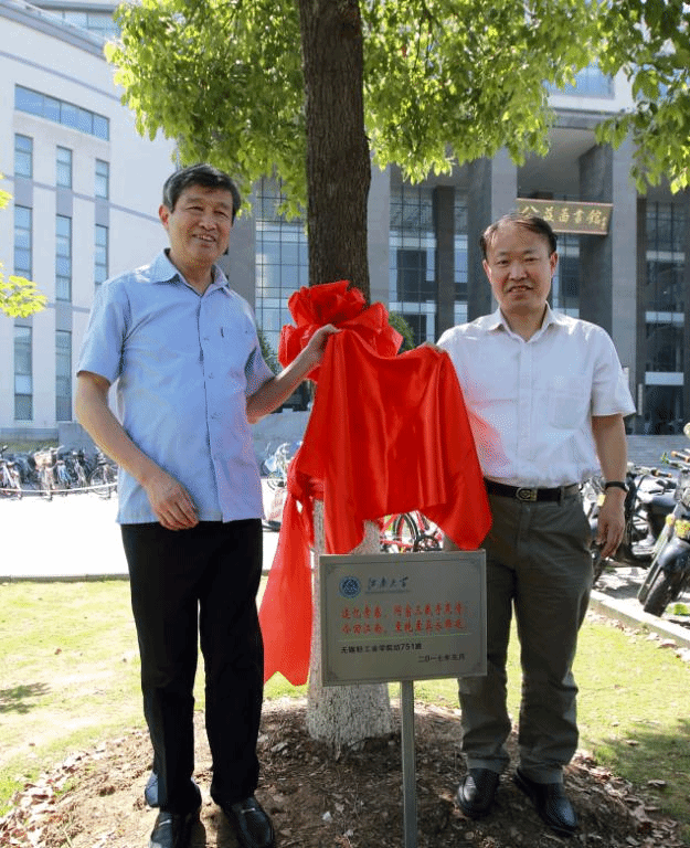 此次返校,最令人难忘、最有意义的活动是认植树。我们班认植了图书馆前的第一棵香樟树,顾正彪副校长亲自参加,和宗林同学共同主持了认植树仪式。顾正彪副校长向我们介绍了学校的发展和变革,并表示学校的进步和历届校友的努力分不开,有许多学生就是看到校友的素质能力或经校友推荐而选择江南大学的。他和同学代表共同为大树揭牌,同学们给大树戴上大红花、扎上红绸带,在树旁合影留念,场面十分喜庆。