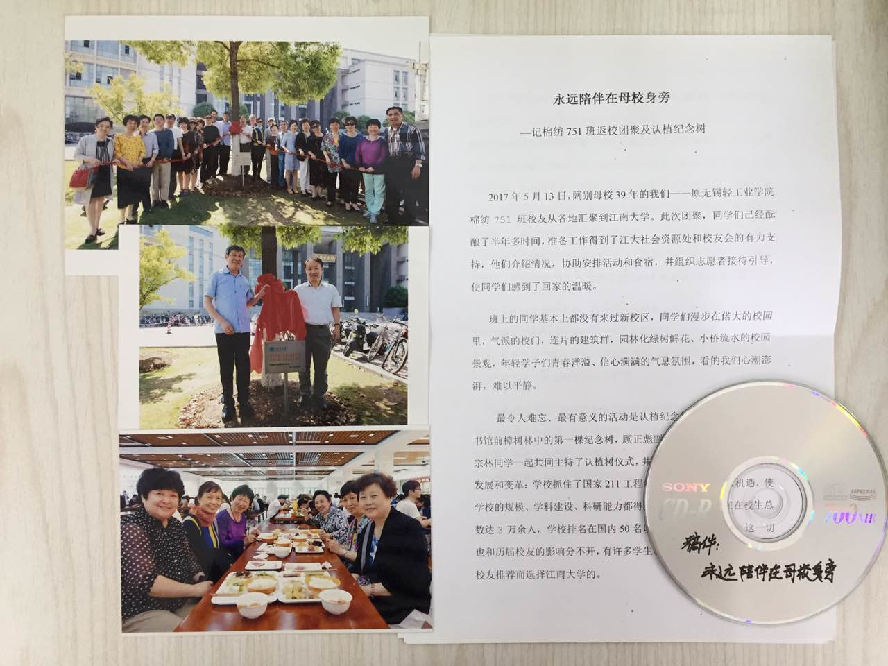 2017年5月13日,阔别母校39年的我们——原无锡轻工业学院棉纺751班校友从各地汇聚到江南大学。此次团聚,同学们已经酝酿了半年多时间,准备工作得到了母校校友会的大力支持,他们介绍情况,协助安排活动和食宿,并组织志愿者接待引导,使同学们感受到了回家的温暖。