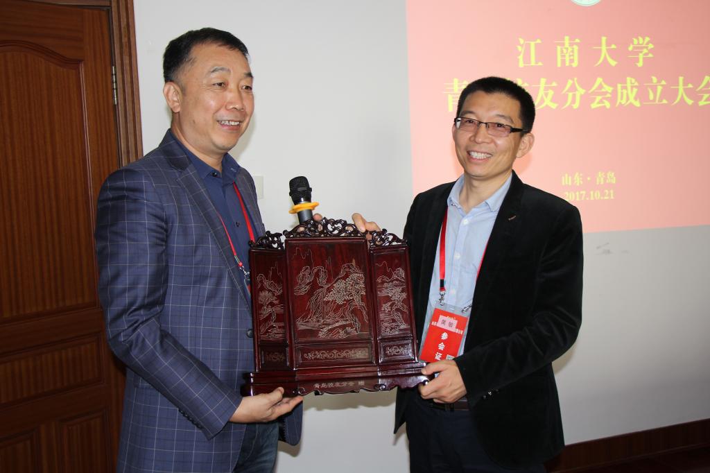 青岛校友会换届大会上,青岛校友会名誉会长、食791范洪涛校友讲话,他承诺新一届校友会将不断探索校友支持学校建设和发展的形式,寻求校企协同发展的模式,为母校应用学科建设和服务校友企业做出贡献。新任会长、饲专851校友张帆向母校赠送纪念品,并代表新一任组织机构成员表示,将继续发扬校友分会的优良传统,创新校友沟通联络渠道,做好校友与母校沟通平台。