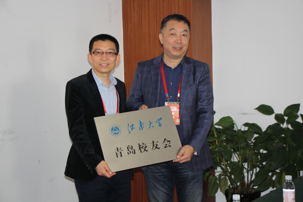 社会资源处黄敏处长向青岛校友会会长张帆授牌