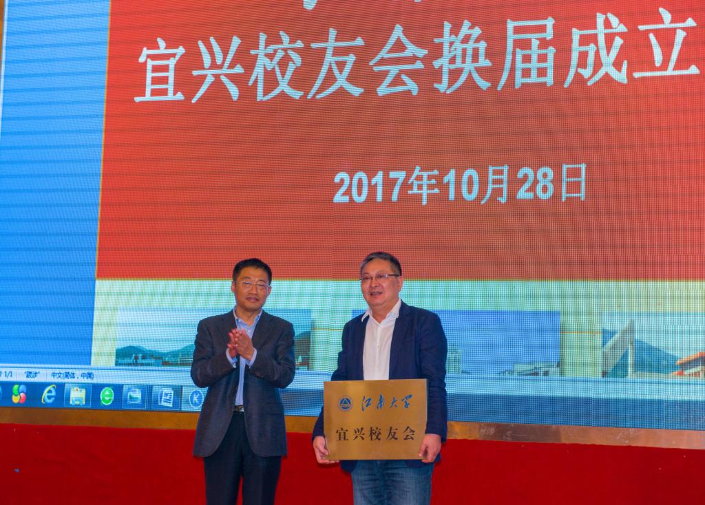 江南大学副校长陈卫颁发宜兴校友会会牌
