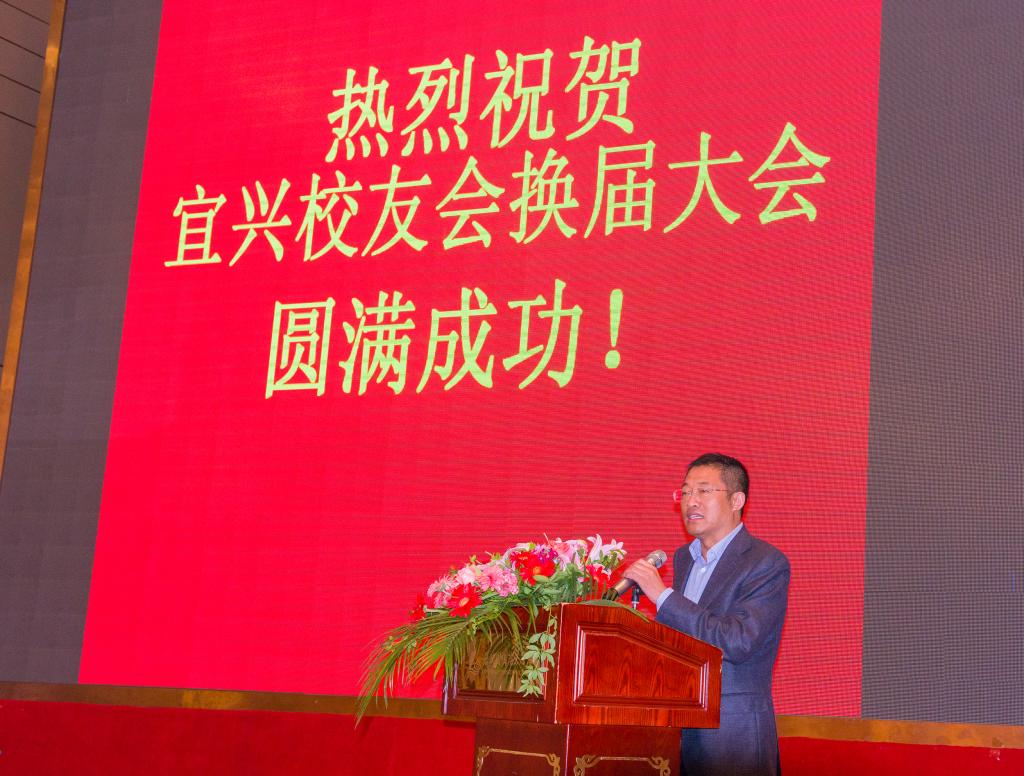 新任江南大学宜兴校友会会长、纺84校友张云发言,他表示将不负信任,贯彻“交流感情、共享资源、共同发展”的宗旨,将宜兴校友会建成团结、求是、创新的组织,服务好广大校友,为母校增添光彩。