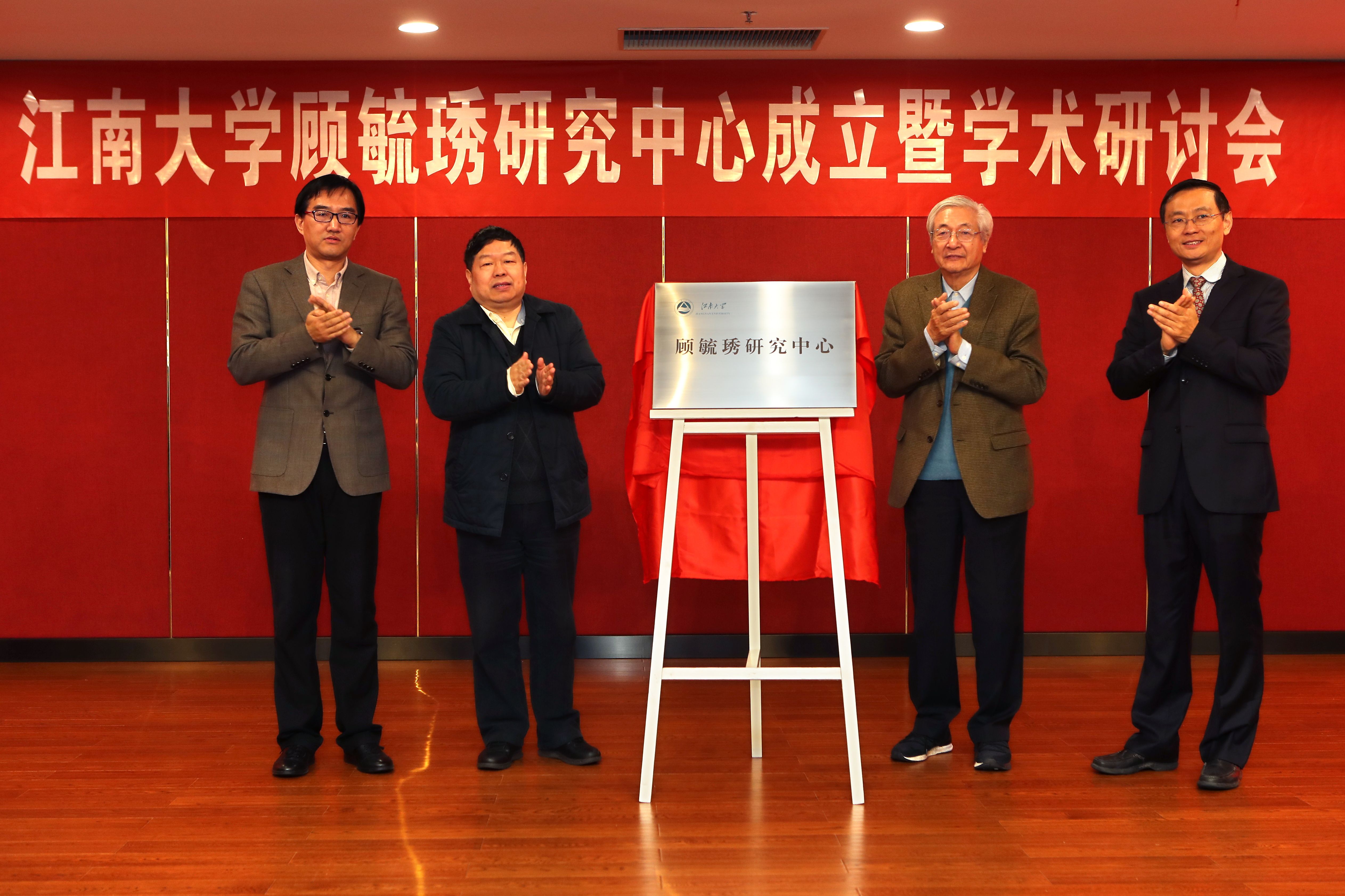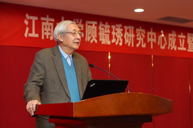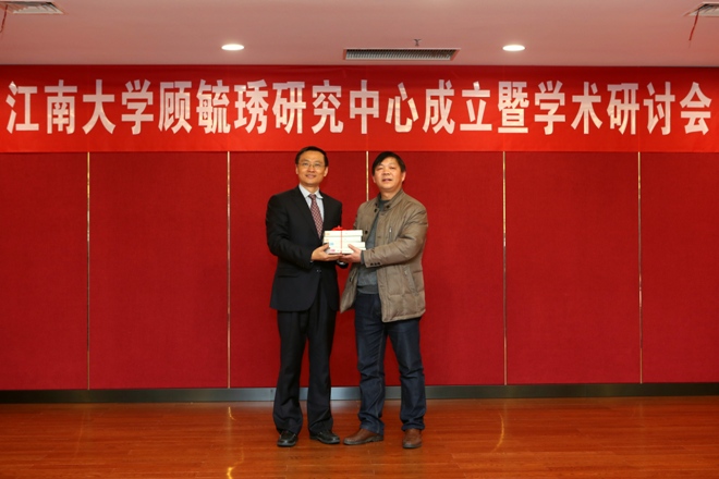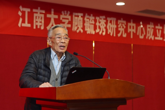 许智宏、陈坚、赵俊明与顾毓琇家属代表为江南大学顾毓琇研究中心揭牌。随后,陈坚发表致辞,他回顾了顾毓琇的生平事迹,希望以顾毓琇研究中心为依托,搭建学校人文社科研究新平台,大力弘扬顾老的爱国爱乡情怀和学术精神,讲好顾老故事,讲好江南故事。陈卫宣读了江南大学顾毓琇研究中心学术委员会组成人员名单。许智宏对中心的成立表示热烈的祝贺,他指出顾毓琇研究中心的成立是对江南文化名人研究和拓展中国近现代文化研究的一个有益尝试,希望中心做好规划,凝聚力量,深入挖掘顾毓琇研究的当代价值和深远意义。顾慰庆先生对江南大学的精心安排和各界人士的大力支持表示感谢和敬意。最后,顾毓琇先生的家属代表向研究中心赠送了《顾毓琇全集》。
