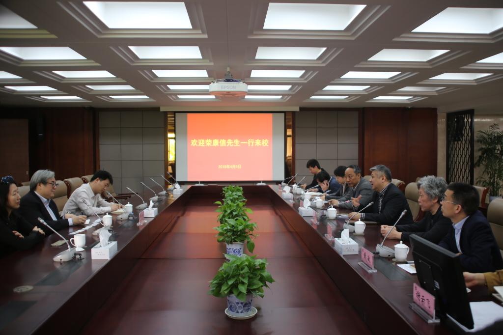 4月9日下午,上海商业储蓄银行董事兼副总经理荣康信一行来校调研。校党委书记朱拓、副校长徐岩、原副校长王武会见来访客人,并代表学校对荣康信一行表示热烈欢迎。学校党办、统战部、社会资源处、国际交流处、食品学院、生工学院、纺服学院及设计学院有关负责人出席了座谈交流。