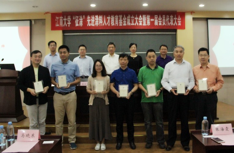 “征涂先进涂料人才教育基金”是在学校的关心和支持下,由化工学院光聚合技术&涂料涂层研究室联合七家行业企业共同捐资成立,首批基金额215万元,这是学校首个成立的行业类基金,基金将为江南大学化工学院涂料人才培养、学科建设提供定向支持,共同致力于涂料工业强国梦的实现。近几年化工学院重视学科的特色发展,加强团队建设;涂料团队老师凝心聚力,体现行业责任,并带头捐赠15万元,这更是高校教师立德树人工作的生动实践!本次大会的成功召开,标志着化工学院教育发展基金迈上新台阶,也是为江南大学60周年校庆的献礼。