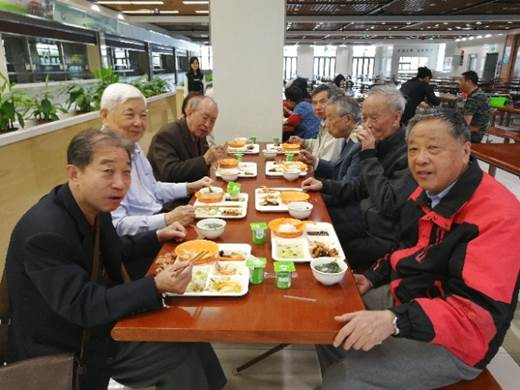 食堂吃一顿学生餐,体验一把当年的学生时光,这道校友回母校必做题受到了校友们的赞不绝口,平均年龄80岁的老校友们胃口大开,还亲切地询问正在吃饭的在校学生一顿饭要花多少钱。当年的青葱岁月恍若眼前,校友们纷纷感慨时代的变迁,不变的是学校对学生的关爱和关怀。