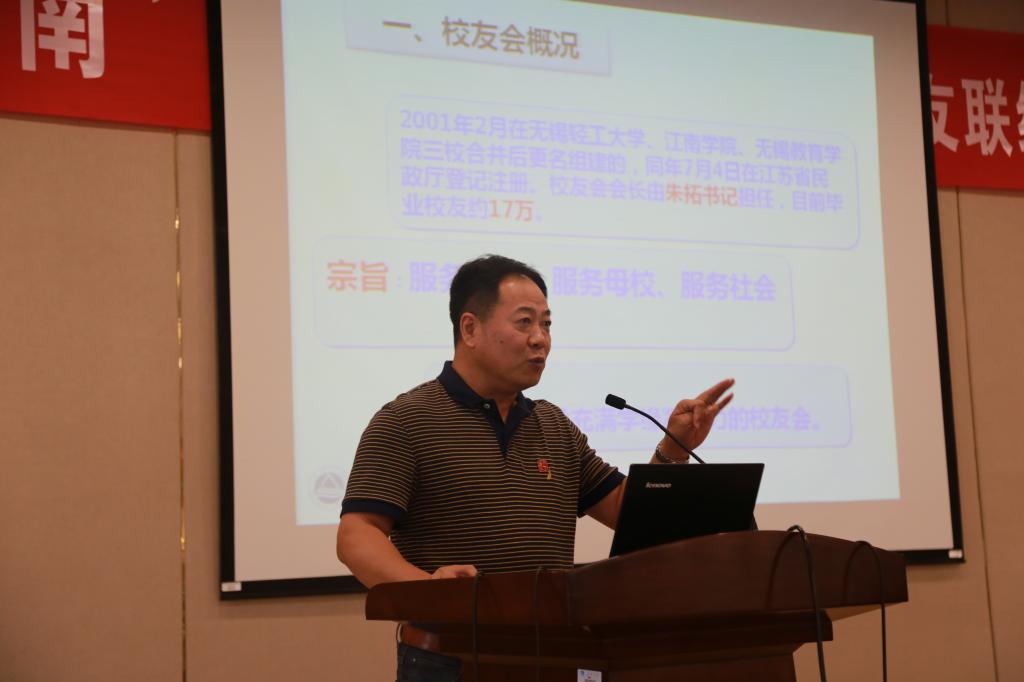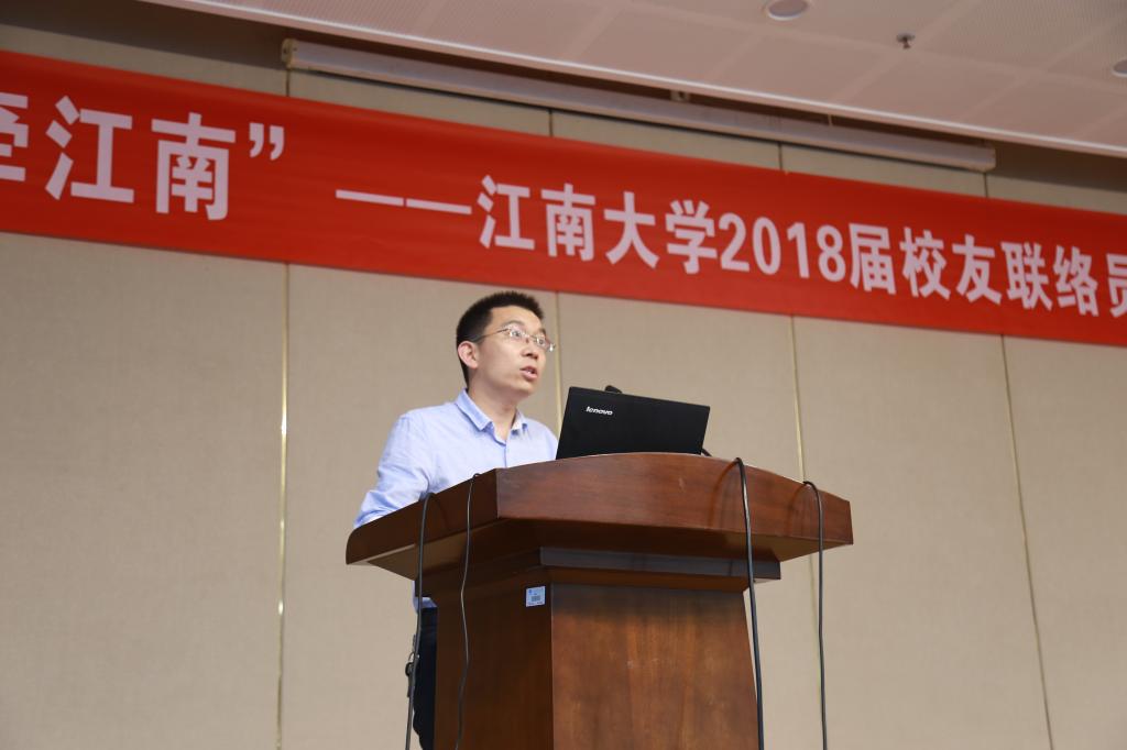 林云鉴秘书长介绍了校友会的发展近况,2018年正值母校60周年校庆,希望校友们心系母校,一如既往地关心支持母校,并邀请2018届校友在“校庆周”返校参与校庆系列活动;上海校友会执行秘书长董伟宇作为地方校友会代表简要介绍了上海校友会的基本组织架构,上海校友的整体情况,以及上海校友会围绕着“汇聚校友力量”、“整合人脉资源”、“解决实际困难”、“共享成长经验”等所组织的各项精彩活动;校友事务部程雪雪为校友们介绍了“校友服务大厅”的具体功能及使用方法,该平台是基于“江南大学校友会”服务号建立的移动互动平台。