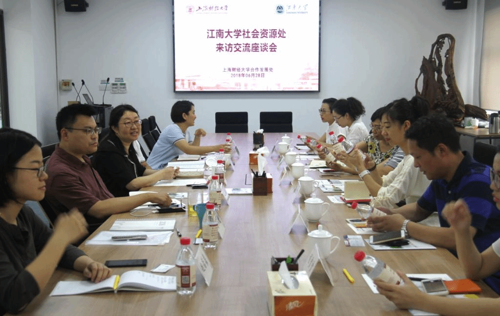 6月28日,我校校友会秘书长林云鉴、社会资源处副处长窦新华一行7人赴上海财经大学走访交流,上海财经大学合作发展处处长陈红梅、副处长杨擎宇、汪峰等接待了林云鉴秘书长一行,双方就开展产学研合作、师生交流等领域的合作意向进行了会谈。