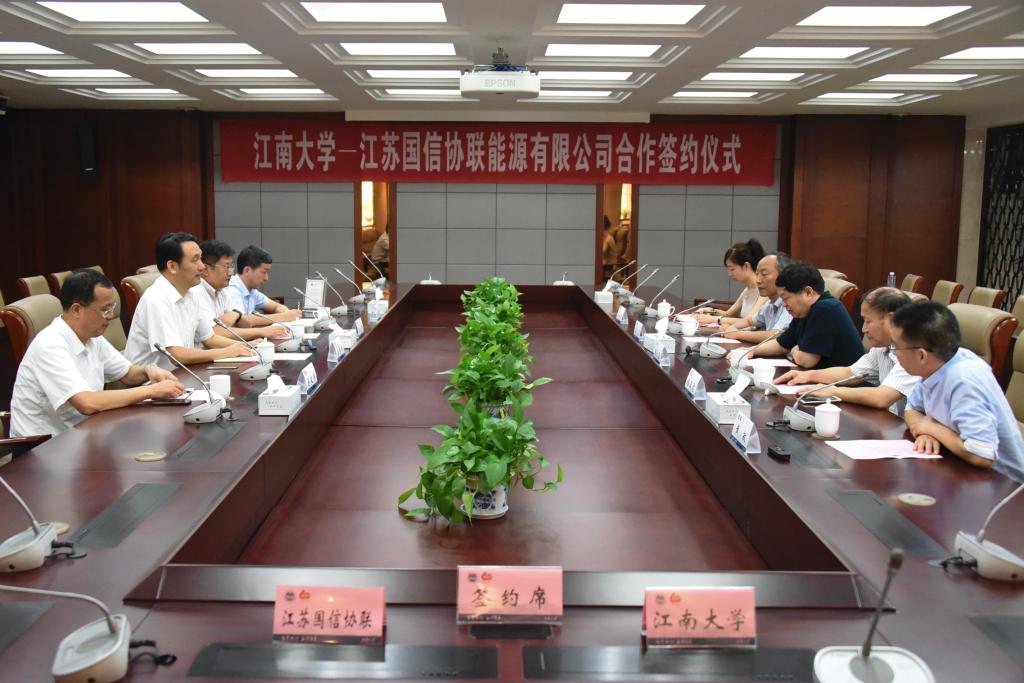 9月5日上午,江南大学—江苏国信协联合作签约仪式在行政楼B305会议室举行。出席签约仪式的有江南大学校长陈坚院士、副校长顾正彪,江苏国信协联能源有限公司总经理宗伟刚、副总经理胡志杰等高层领导,以及学校党委办公室、社会资源处等相关部门负责人。仪式由江南大学社会资源处处长黄敏主持。