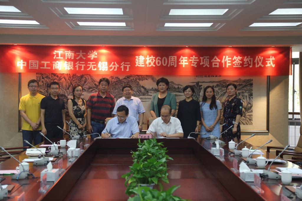 9月19日下午,中国工商银行无锡分行——江南大学建校60周年专项合作签约仪式在我校行政楼305会议室举行。校长陈坚、副校长吴正国,中国工商银行无锡分行行长汪超、副行长戴政,我校党委宣传部、校长办公室、财务处、社会资源处及工商银行无锡分行等相关部门及单位负责人出席签约仪式。