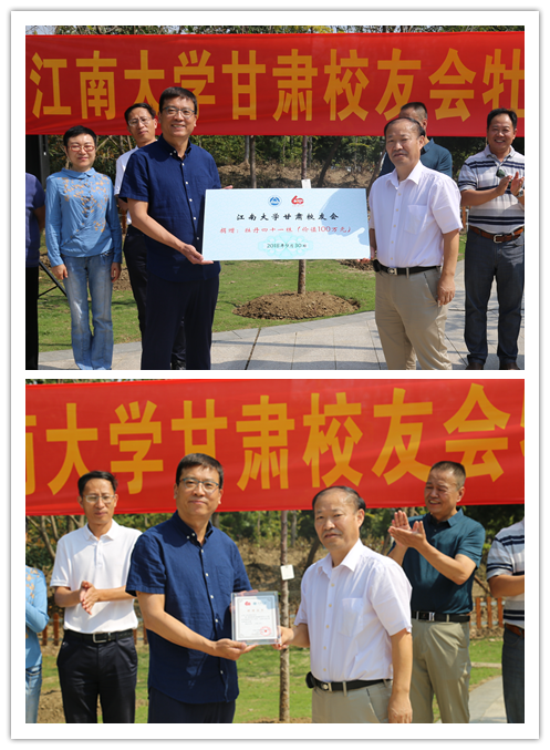 随后,参会领导与甘肃校友一同为牡丹培土、浇水,并挂上捐赠铭牌。牡丹被称为百花之王,有圆满,浓情,雍容华贵之意,甘肃校友会此次的捐赠表达了天下江南人对母校的祝福,天下江南人的情操也像这牡丹一样高洁美好,诚信守诺。校友们相约明年春天再次来到牡丹园,一睹天香国色,再忆美好青春。