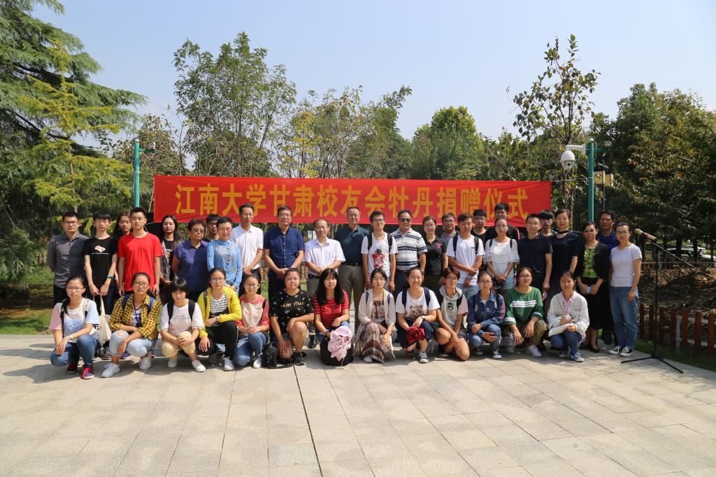 阳艳天高暑气微,初秋美景惹人醉。9月30日,在牡丹园内,来自甘肃的校友携陇上牡丹为母校甲子校庆献礼。出席捐赠仪式的有江南大学副校长顾正彪、甘肃校友会会长曹瑜、副会长孙宁、参加仪式的还有社会资源处、后勤管理处代表、甘肃校友代表等。仪式由江南大学社会资源处处长黄敏主持。
