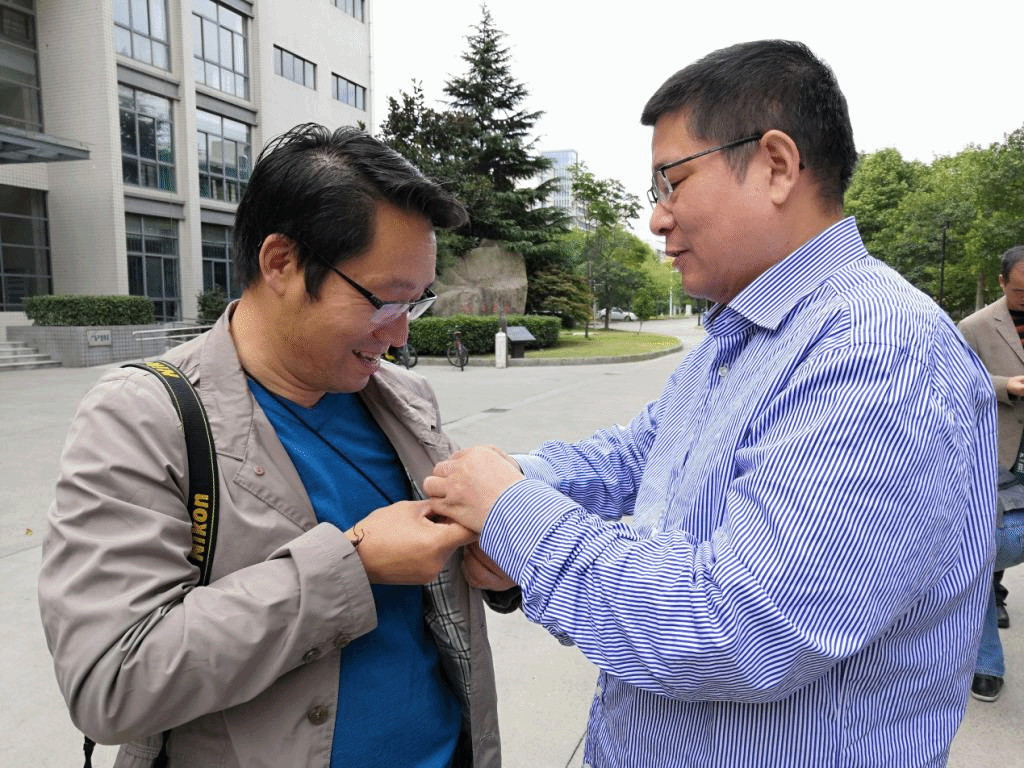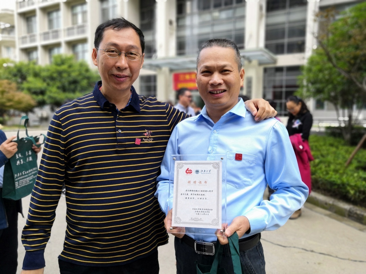 校友们在会议室观看他们合力倾心制作的影集,一张张往日的照片,勾起学生时代的美好回忆,大家边观看影集,边回忆当年的点滴,往日的情谊此时显得尤为深厚。校友们畅所欲言,诉说着几十年来的思念,一篇篇演讲,一首首朗诵惹人泪目,感叹时光飞逝,共同追忆校园生活。在班级横幅上校友们逐一签名,合影留念并齐声共祝母校六十华诞生日快乐。接下来校友们来到食品楼前,纷纷佩戴社资处为大家准备的天下江南人校徽,并在认植树前留下美好的瞬间,希望这棵树能代替他们见证母校的发展。