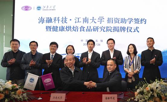 捐赠仪式上,姚惠源教授和黄海瑚总经理代表校企双方正式签约,上海海融食品科技有限公司向江南大学食品学院捐赠一百万元用于“姚惠源▪胡珏琴百万奖助学爱心基金”的建设与发展,希望通过以此捐赠资助更多优秀食品学子,为培养一流食品人才做出更多贡献。海融科技总经理黄海瑚与江南大学食品学院院长刘元法为健康烘焙食品研究院成立揭牌,未来研究院将集合校企力量,为国家食品烘焙产业发展添砖加瓦。