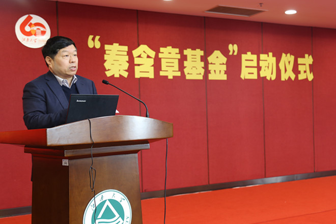 陈坚校长首先致辞。他代表全校师生对莅临我校的来宾表示欢迎,向酒业协会领导与企业家代表表示感谢。他介绍了秦含章先生与江南大学的渊源,作为新中国食品科学技术和工业发酵与酿造技术的开拓者和学术带头人,秦含章先生为国家培养了一代又一代专业精英人才。“秦含章基金”是在一流学科设立的单一金额最高的基金项目,基金设立在江南大学教育发展基金会,体现了酒业协会和众多白酒企业对江南大学教育发展基金会的信任与支持。相信在国家政策指导与行业企业家支持下,我校食品轻工相关学科必将再上新台阶。