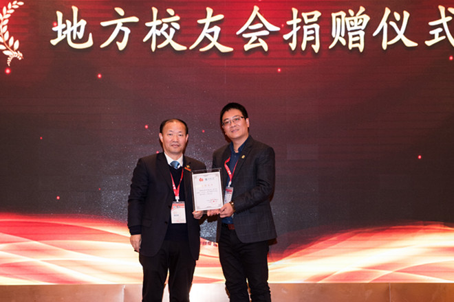 顾正彪副校长为校友分会代表颁发捐赠证书