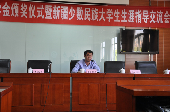 仪式上,单筱婷宣读了2019年石榴奖学金获奖学生名单并进行颁奖,获奖学生代表米日扎提·多力昆江表达了对奖学金设立者雪合拉提的感谢。奖项的设立不仅是对学校的感恩与反哺,更是富而思源、爱心传递、助力少数民族学生发展的情怀,他将不忘这份爱心与支持、再接再厉,成长成才,回报社会。随后,雪合拉提分享了自己的求学及创业经历,鼓励少数民族学生要坚定目标并坚持不懈地努力,要有敢于创业的勇气,重视创业中人际关系的拓展。胡娟老师感谢校友雪合拉提对母校的关心、对少数民族学生的关爱与支持,她简要介绍了学校少数民族学生基本情况与学校人文关怀措施,鼓励广大少数民族学生以榜样为镜、向优秀看齐,不忘国家、学校和社会的关心与资助,发扬“笃学尚行,止于至善”的校训,志存高远,不断提升自我,在江南大学成长成才。