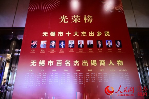 现场展示“无锡市十大杰出乡贤”与“无锡市百名杰出锡商人物”的光荣榜