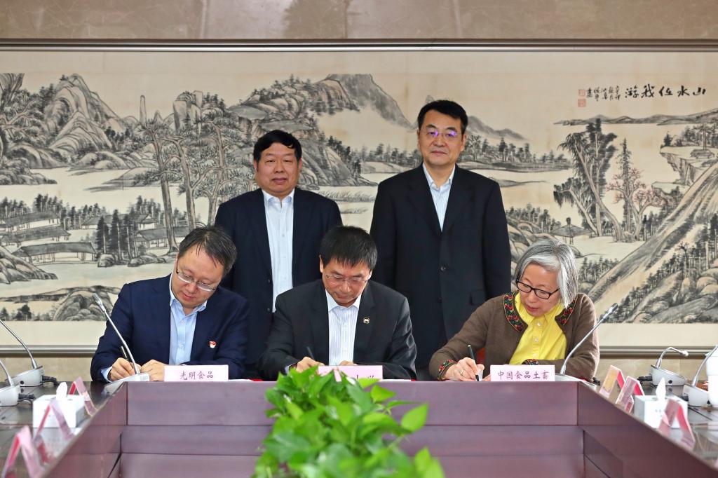 会议对中国进口食品研究院的未来发展进行了深入交流。之后,我校与光明集团、中国食品土畜进出口商会签订了《共建中国进口食品研究院的战略合作协议》。