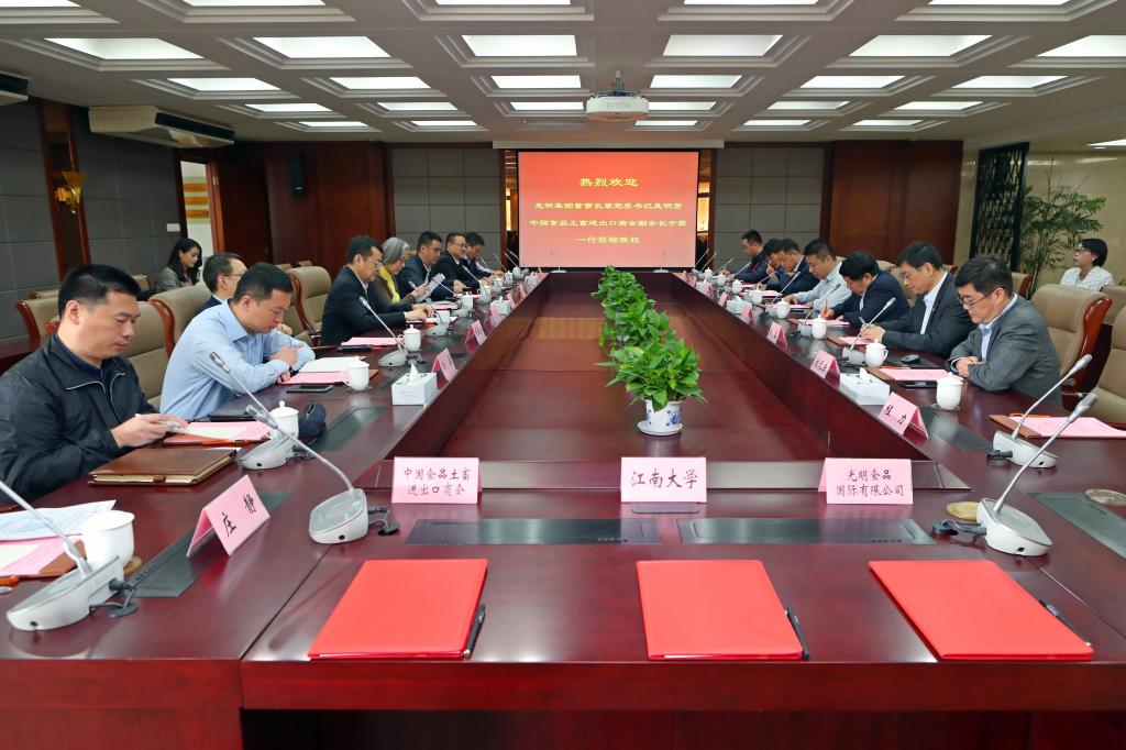 10月17日上午,光明集团董事长兼党委书记是明芳和中国食品土畜进出口商会副会长于露一行13人来访我校,校长陈坚、副校长田备、校长办公室副主任孔祥年、食品学院院长刘元法及相关老师出席座谈会。会议由产业技术研究院院长张梁主持。