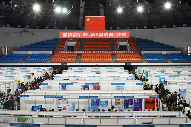10月26日,江南大学2020届毕业生秋季大型招聘会在学校体育馆举行。312家企业带来了13132个岗位。江苏洋河酒厂股份有限公司、远东控股集团有限公司、福建安井食品股份有限公司、雅迪科技集团有限公司和燕谷坊集团等19家董事单位,遴选了1671个优质岗位提供给毕业生。实习岗位涵盖了审计、策划、销售、咨询、物流等各行业,岗位需求包括了财会、金融、营销、新闻、物理机电和外语等多个专业。本次招聘会,学校为董事单位提供了最醒目的展位,还为董事单位提供了从前期联络、入场引导,到单位布展、后期跟踪一对一全程志愿者的贴心服务。