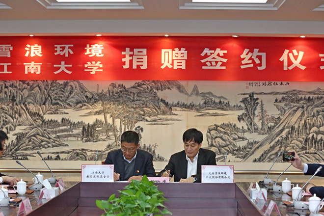 12月18日,江南大学与无锡雪浪环境科技股份有限公司捐赠签约仪式顺利举行。无锡雪浪环境科技股份有限公司董事长杨建平,财务总监马祺等出席仪式,我校党委书记朱庆葆,副校长陈卫,党委常委、党办主任朱飞,党委常委、宣传部部长倪松涛,学校社会科学处、社会资源处、教育发展基金会和江南文化研究院相关代表出席会议。社科处处长刘焕明主持捐赠仪式。