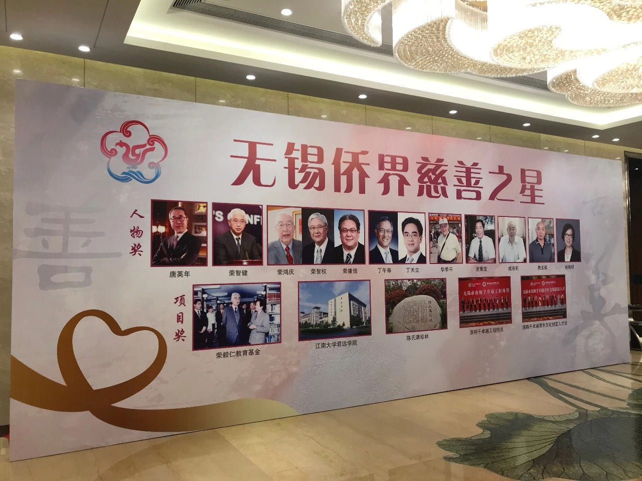 本次“无锡侨界慈善之星”共评选个人奖10项,项目奖5项。结合多年来侨界爱心人士给予我校的支持情况,我校推荐7位个人(项目)参评“慈善项目”。最终,荣智健,唐英年,荣鸿庆、荣智权、荣康信祖孙三人当选“无锡侨界慈善之星”人物奖,荣毅仁教育基金,江南大学君远学院当选“无锡侨界慈善之星”项目奖。