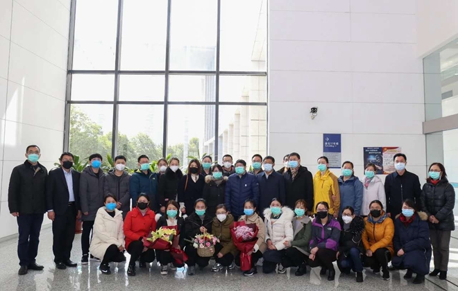 校领导为江南大学附属医院第二批援鄂医护人员壮行