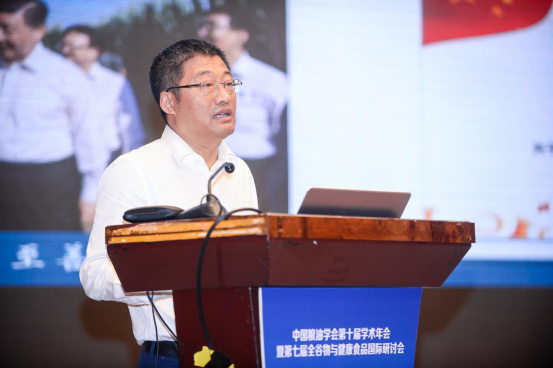 中国粮油学会理事长张桂凤在大会致辞中表示,近两年,学会积极贯彻国家粮食和物资储备局全力保障国家粮食安全的战略部署,对标中国科协开展群团改革、建设世界一流学会的要求,立足自身优势,科学谋划、统筹推进,塑造了学会工作新格局。她号召广大粮油科技工作者要牢牢抓住粮食产业转型升级的契机,全面落实“藏粮于地、藏粮于技”战略,聚焦跨界融合,强化集成创新,扬优势、补短板,研究攻克产业发展的关键核心技术,加快推动“三链”协同发展,做好“粮头食尾、农头工尾”这篇大文章。