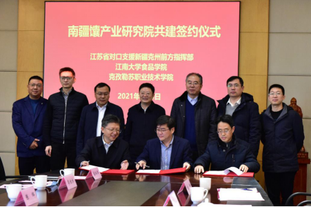 南疆馕产业研究院由江南大学食品学院、克孜勒苏职业技术学院和江苏省对口支援新疆克州前方指挥部三方共建。在克孜勒苏职业技术学院对馕的地域特色、消费群体了解的基础上,结合江南大学食品学院在食品领域的雄厚科研实力,依托江苏省对口援克前方指挥部对克州脱贫攻坚的强大助力,共建馕产业研究院,开展协同创新研究,将有效推动馕产业的标准化、规模化、优质化建设,促进南疆乃至新疆整体馕产业的健康和高质量发展。
