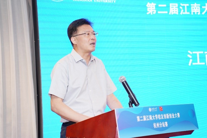 7月31日,第二届江南大学校友创新创业大赛杭州分站赛在杭州顺利举办。江南大学党委副书记符惠明,无锡市滨湖区委常委、统战部部长陈虎,浙江省江南大学校友会会长、赞宇科技集团总经理方银军,江南大学社会资源处处长黄敏,江南大学国家大学科技园总经理殷宝良,浙江省江南大学校友会秘书长、赞宇科技集团副总经理任国晓,中国全国供销合作总社杭州茶叶研究院学术委员会主任张士康,中建材智能自动化研究院副院长梅鸿,江南大学宁波校友会会长、宁波田丰日用品有限公司董事长汤杰,江南大学湖州校友会会长、浙江欣业包装有限公司董事长冯天法,以及来自江南大学社会资源处、国家大学科技园代表,无锡市滨湖区政府相关部门和企业代表,浙江省校友代表等100余人出席了此次大赛。