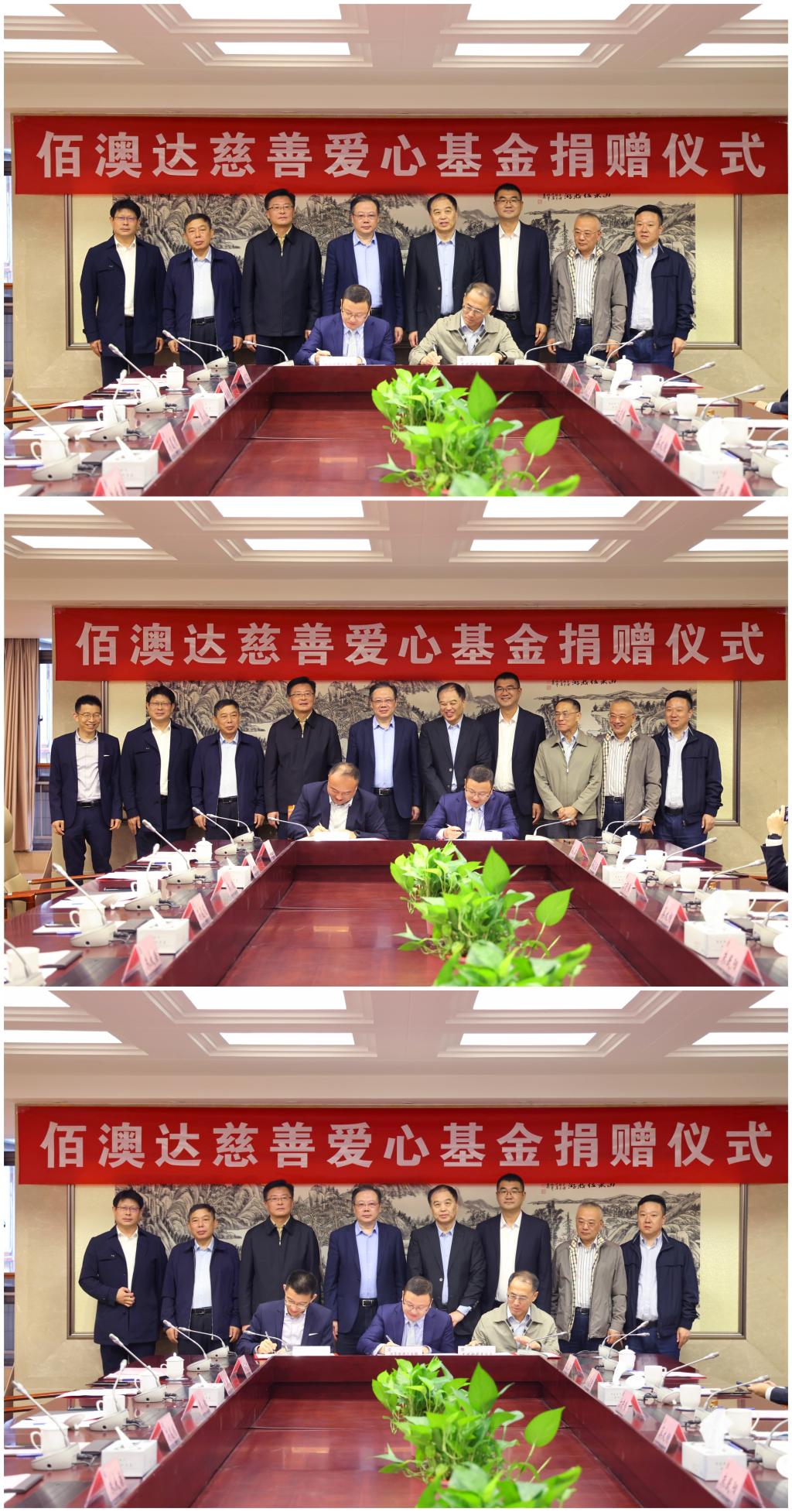 10月8日,佰澳达慈善爱心基金捐赠仪式在江南大学举行。无锡市慈善总会会长朱民阳、常务副会长蔡大钢、副会长方中伟、江苏佰澳达生物科技有限公司董事长马凯、总经理张菻钧、江南大学党委书记朱庆葆、党委副书记符惠明出席本次仪式。无锡市慈善总会、江苏佰澳达生物科技有限公司、江苏古来健康产业有限公司、无锡国联金投和合私募基金管理有限公司、东吴证券无锡分公司、江苏新申奥生物科技有限公司、江南大学社会资源处、社会科学处、食品学院、马克思主义学院、江南文化研究院等相关负责人参加活动。签约仪式由江南大学党委常委、宣传部部长倪松涛主持。