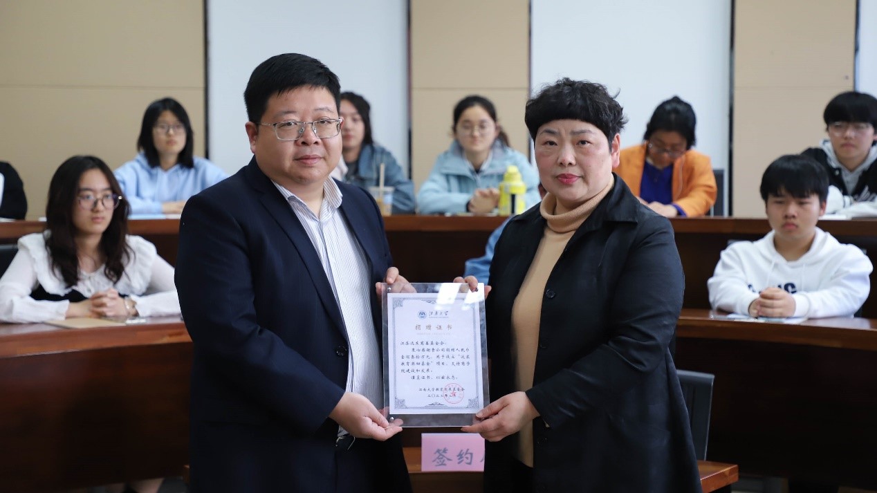 商学院党委书记刘长青颁发捐赠证书