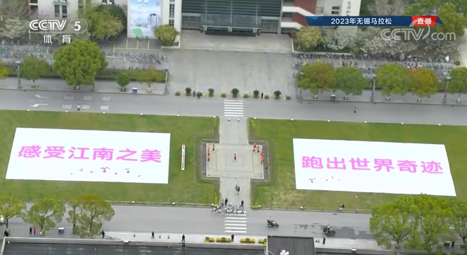 此次锡马活动中,我校师生朝气蓬勃,一如既往地营造了浓厚的赛事氛围。校门口的欢迎牌热烈迎接着参赛者们的到来;行政楼前的草坪上放置了“感受江南之美,跑出世界奇迹”的大幅标语;随处可见的红色条幅和地贴不断点燃参赛者的激情;人文学院以舞蹈快闪展现江南学子的青春活力......每一处精心布置的背后都彰显着江南大学师生的观赛热情,优美的校园环境、独特的人文风采、深厚的文化底蕴,共同打造出了一条“江南大学最美赛道”。