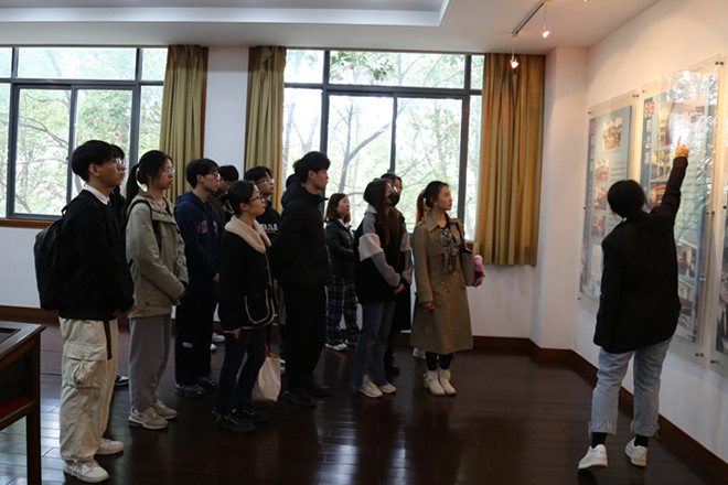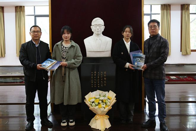 接着参会人员前往位于文浩馆二楼的程志新、程正平先生事迹陈列室,参观程氏父子生平及其鼎助教育、热心公益的事迹展板。秘书处刘虹兵向大家做讲解。参观后,周云龙和任增亮分别向学缘志愿者协会和化工学院同学赠书。