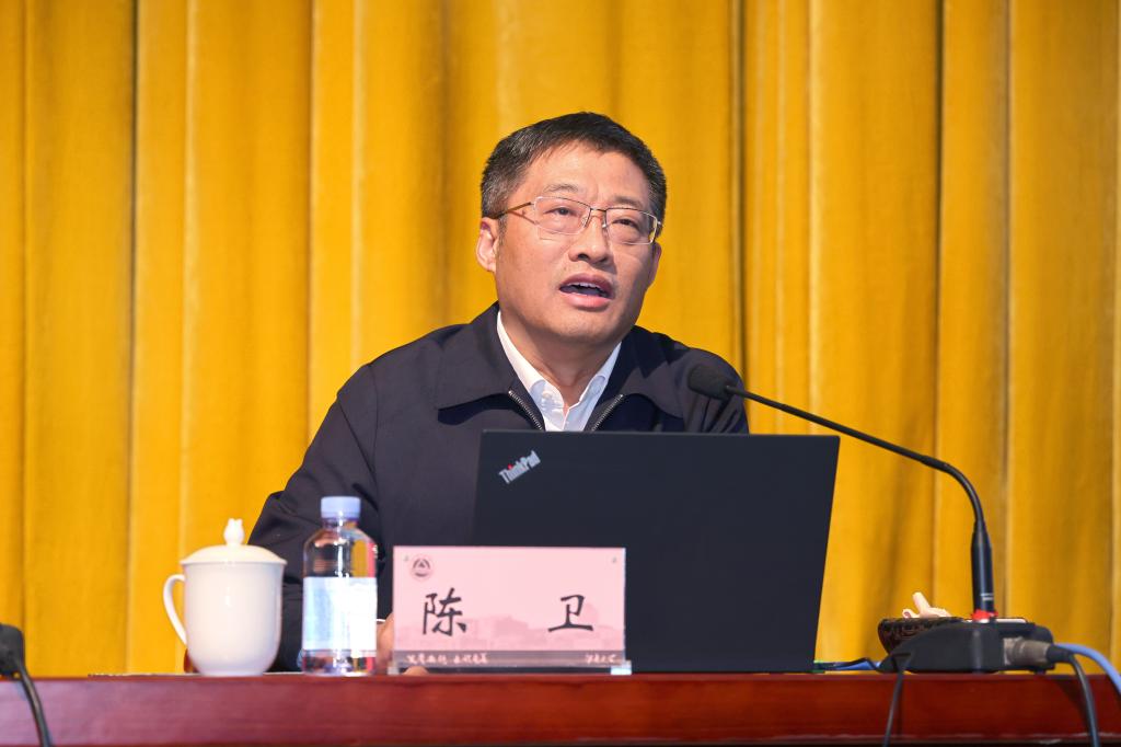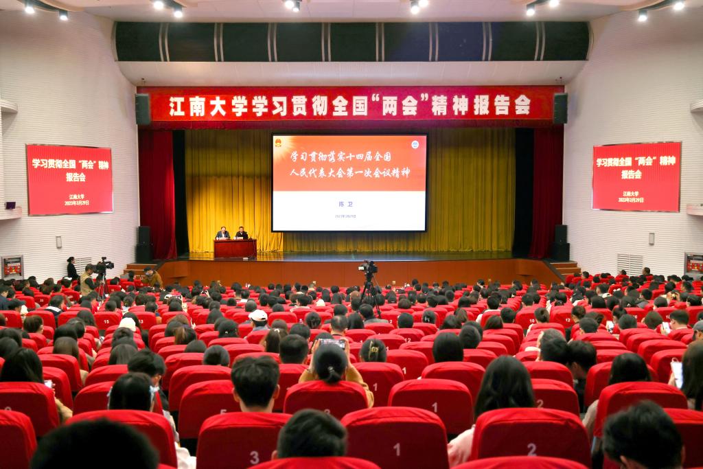 陈卫从大会总体概况、政府工作报告、习近平总书记重要讲话和重要指示精神、国务院机构改革与新一届国家机构领导人和组成人员等方面详细介绍了十四届全国人大一次会议的召开情况;深刻阐释了政府工作报告提出的2023年工作总体要求、主要预期目标和重点工作;着重介绍了习近平总书记参见江苏代表团审议的重要讲话精神,特别介绍了自己首次人大代表履职情况,表示自己作为新一届全国人大代表,参加人大会议并亲身聆听习近平总书记的重要讲话,倍感光荣、倍感振奋、倍感自豪,觉得使命崇高、责任重大。希望全校认真学习贯彻习近平总书记重要讲话精神,反复学习体悟、系统研究部署、全面推进落实,恪尽职守、奋发有为,以实际行动推进学校各项工作高质量发展。