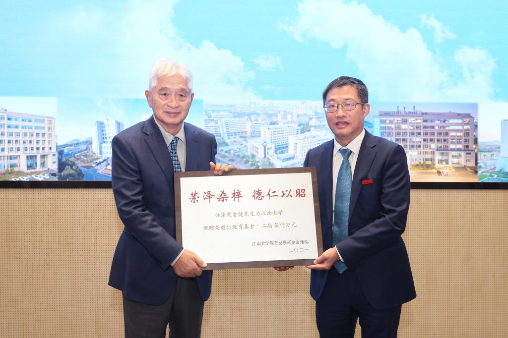 仪式最后,朱庆葆发表讲话。他向荣智健先生以及荣氏家族长期以来为江南大学创办和发展作出的支持和贡献表达了感谢。他指出,荣氏家族于1947年创办私立江南大学,不仅开创了国内第一批食品工业系,学科脉络延续至今,为今日江南大学攀登世界一流食品学科高峰奠定始基。回望过去,江南大学始终同祖国的命运紧密相连。聚焦当下,学校积极发挥学科优势,助力“大食品”学科及相关产业在世界高等教育舞台不断进取。展望未来,学校将传承弘扬实业报国精神,践行“大食物观”科技创新,持续推进包括未来食品科学技术在内的新型产业技术革新,全面提升江南大学的办学水平和影响贡献。