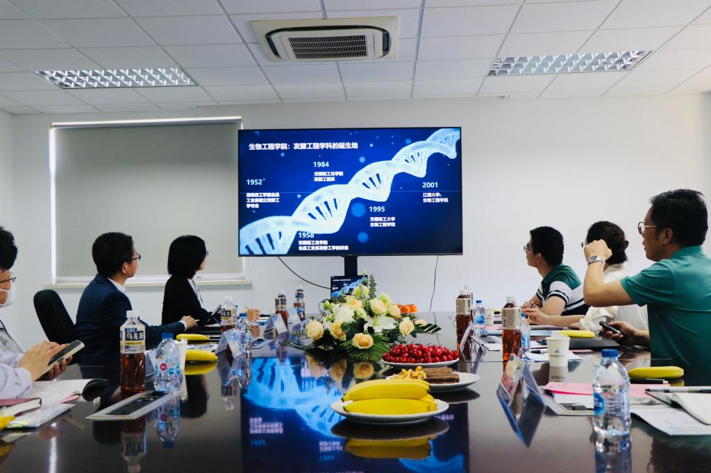 座谈交流环节,森松集团副总裁陆伟峰致欢迎辞,他表示,江南大学在轻工领域享有盛誉,真诚期待校企双方能携手并进,加强合作。森松生命科技高级执行副总裁江培详细介绍了森松集团和森松生命科技的发展沿革、核心竞争力和企业文化。周云龙向森松集团领导介绍了江南大学整体办学情况和学科建设优势,以及生物工程学院作为中国发酵工程学科的诞生地,近年来在人才培养、科学研究、社会服务等方面取得的成绩。交流过程中,校企双方围绕产学研合作、学生就业等开展了详细讨论。会后,周云龙一行还参观了公司的生产车间,并和在森松工作的学院校友进行交流,了解发展情况。