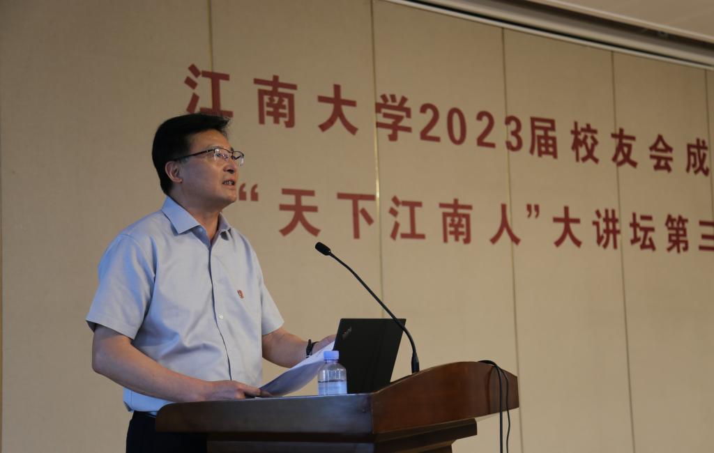 6月17日下午,江南大学2023届校友会成立大会暨“天下江南人”大讲坛第三十七讲举行。校党委副书记符惠明,精细化工94届硕士、发酵工程05届博士校友伍晓林,学生工作处处长周伟涛,团委书记魏珍吉,社会合作与校友联络处副处长任增亮,校友会秘书长林云鉴以及校友分会代表、2023届校友联络员参加了本次活动。会议由社会合作与校友联络处处长周云龙主持。