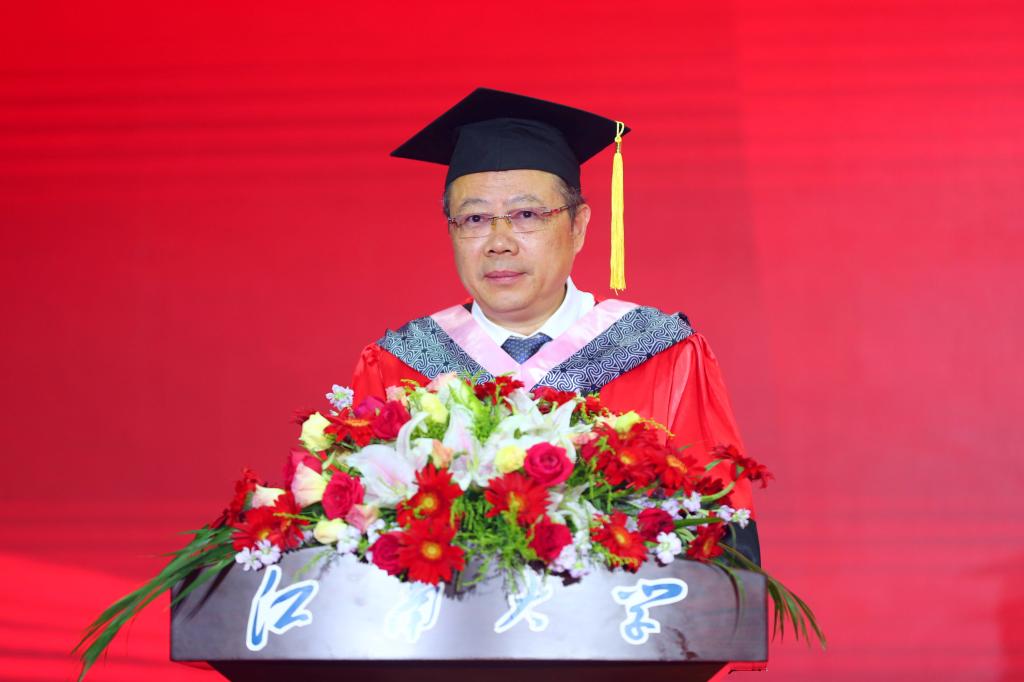 陈卫发表了题为《逐梦青春“苦作舟”》的讲话,向2023届毕业生们送上最热烈的祝贺与最诚挚的祝福,向潜心培育同学们成长的老师、家人和工友们,致以了最崇高的敬意和最衷心的感谢。陈卫表示,三年的疫情为大家的学习、生活平添了许多波折和遗憾,但大家在等待“春暖花开”的日子里,自律阳光、奋发向上,让这段特殊的青春年华变得熠熠生辉。今年五四前夕,习近平总书记在给中国农业大学科技小院同学们的回信中说到,“青年人就要‘自找苦吃’”。站在毕业的人生新起点上,如何理解“自找苦吃”的精神内涵与时代价值,是毕业生们迈入社会“新课堂”的一门“必修课”。对此,他提出三点希望,一要以“苦”为师,涵养“自找苦吃”的精神品格;二要以“苦”为荣,赓续“自找苦吃”的历史传承;三要以“苦”作舟,践行“自找苦吃”的江南担当 。希望大家以“苦”作舟,以梦为马,以实现中华民族伟大复兴为己任,不负时代,不负韶华,不负党和人民的殷切期望。